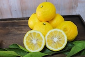 はるかは、レモンのように黄色ですが、酸味が少なく、上品な甘さで、ぷるっとした食感が人気です。種がある品種です。皮が厚いため、カットして、お召し上がりください。