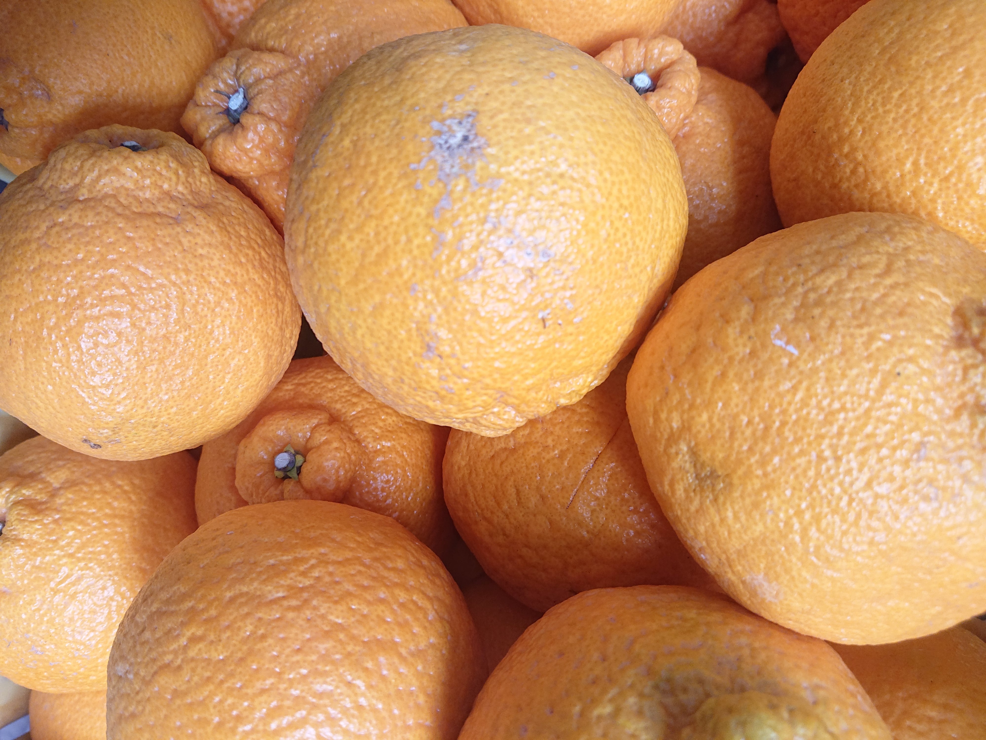 柑橘の王様と呼ばれるしらぬひ(不知火)です。皮は、温州みかんと比べると厚いですが、手で剥くことができ、中の薄皮ごと食べることができます。高い糖度と、程よい酸味があり、果汁たっぷりの品種です。